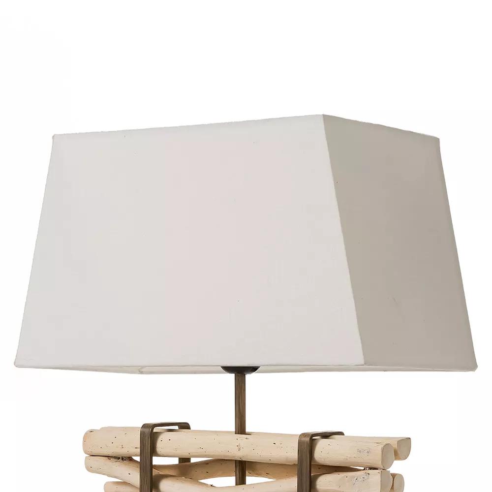 Our Stack Series Driftwood Nautical Table Lamp features a collection of natural handmade reclaimed driftwood arranged in a stack that forms a unique, one-of-a-kind lamp. The stack is wrapped and set upon a natural gohanoy wood base. The driftwood table lamp offers a classic nautical style that brings a sense of casual elegance to your living space. Includes a matching shade for a perfect finish. Each lamp is handcrafted from the best materials. Measures 13.8" by 7.1" by 16.75" tall. Max 60W bulb not included.