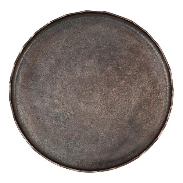 This decadent and ornate coffee table brings old-world style to a new decade with its one-of-a-kind design. The Alessia coffee table features an artisanal design that will be an attractive staple for any room. Each table is crafted by skillful artisans, cast from beautiful aluminum material. The casting process makes each piece unique, ensuring that your Alessia table will look one-of-a-kind for your home. It also has a striking deckled edge that gives it an organic look and a raised edge. The Alessia table itself sits low to the ground to foster a sophisticated gathering area for your home. This elegant accent table's overall dimensions are 25 inches wide by 25 inches deep by 15 inches high, giving you plenty of space to use it as a place to gather, a decorative display, or a functional storage area for household necessities. The Alessia round coffee table is simple to put together thanks to an easy two-step assembly process: screw each of the three legs into the bottom of the tabletop, and you're ready for a fabulous statement piece.
