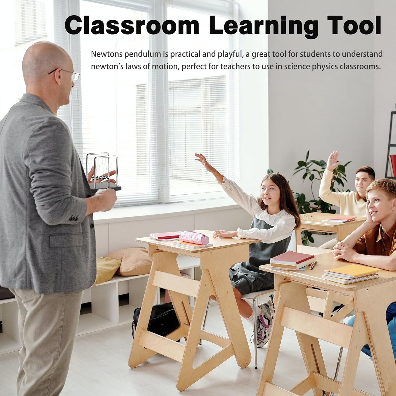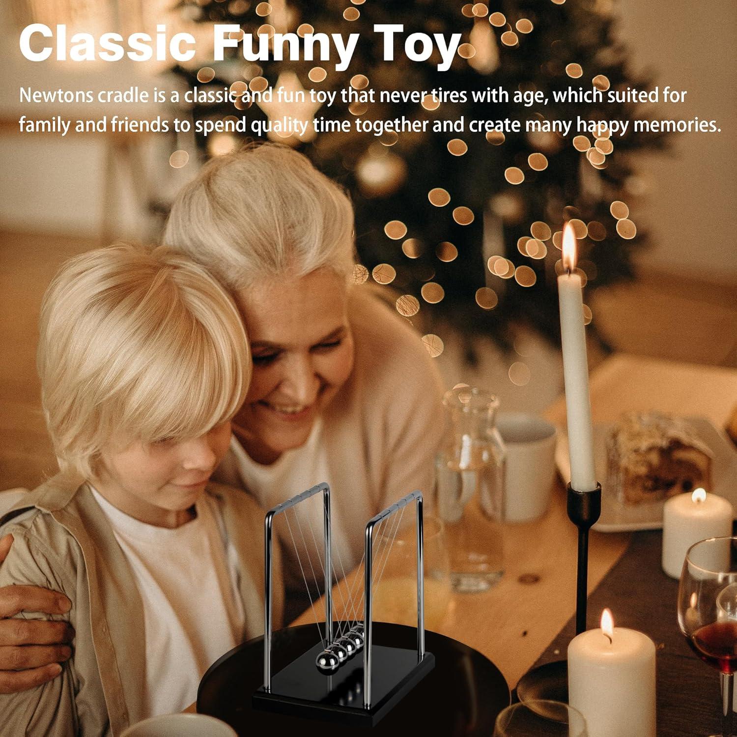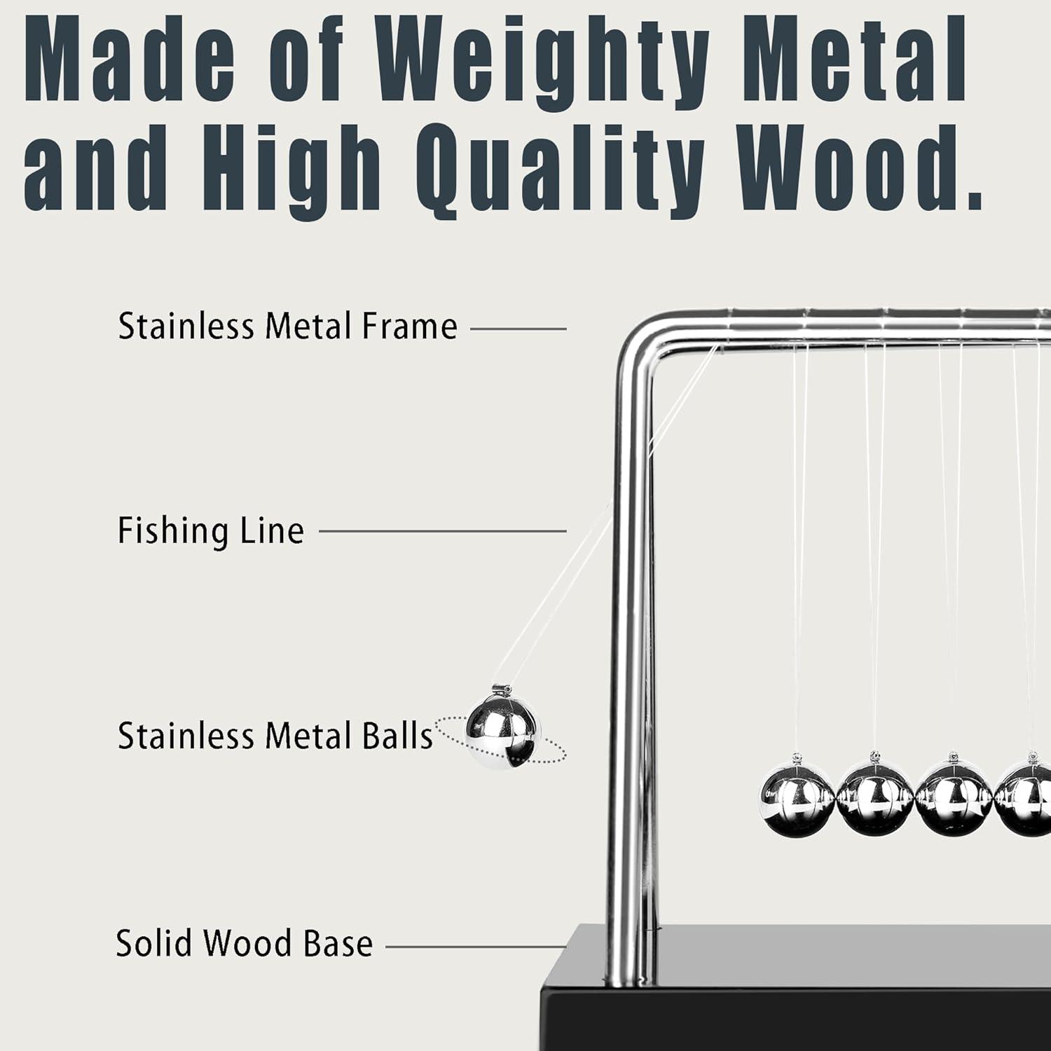 High Quality: This newtons cradle is made of a solid wood base, fishing line, stainless metal balls and frame, durable for long time use, sturdy and not easy to break. Thoughtfully designed packaging protects the pendulum balls from being easily tangled Longer Swing Time: Due to the resistance of the air, Newton's cradle balance balls will continue to move for 10-20 seconds. You have enough time to observe the kinetic energy performance of the Newtons balls movement. This is not a perpetual motion machine. Physics Learning Tool: Learning knowledge in fun. Newtons pendulum is a great tool for students to understand newton's laws of motion, perfect for teachers to use in science physics classrooms. Easy to install, funny and educational. Office Desk Decor: Special decoration for your office and home. When you are bored or feel tired of your work, play with this desktop stuff, these clicking gravity balls can relax your mind and relieve stress. The newtons cradle pendulum is also a cute gadget to create conversation which has a magic power to attract people to touch it. Unique Gift idea: This is a great gift for kids, adults, and those who love science and physics on birthdays, Christmas and other holidays. Maybe this nostalgic toy will remind you of the memories of when you were still a kid. Disclosure: We are a participant in the Amazon Services LLC Associates Program, an affiliate advertising program designed to provide a means for us to earn fees by linking to Amazon.com and Affiliate sites.