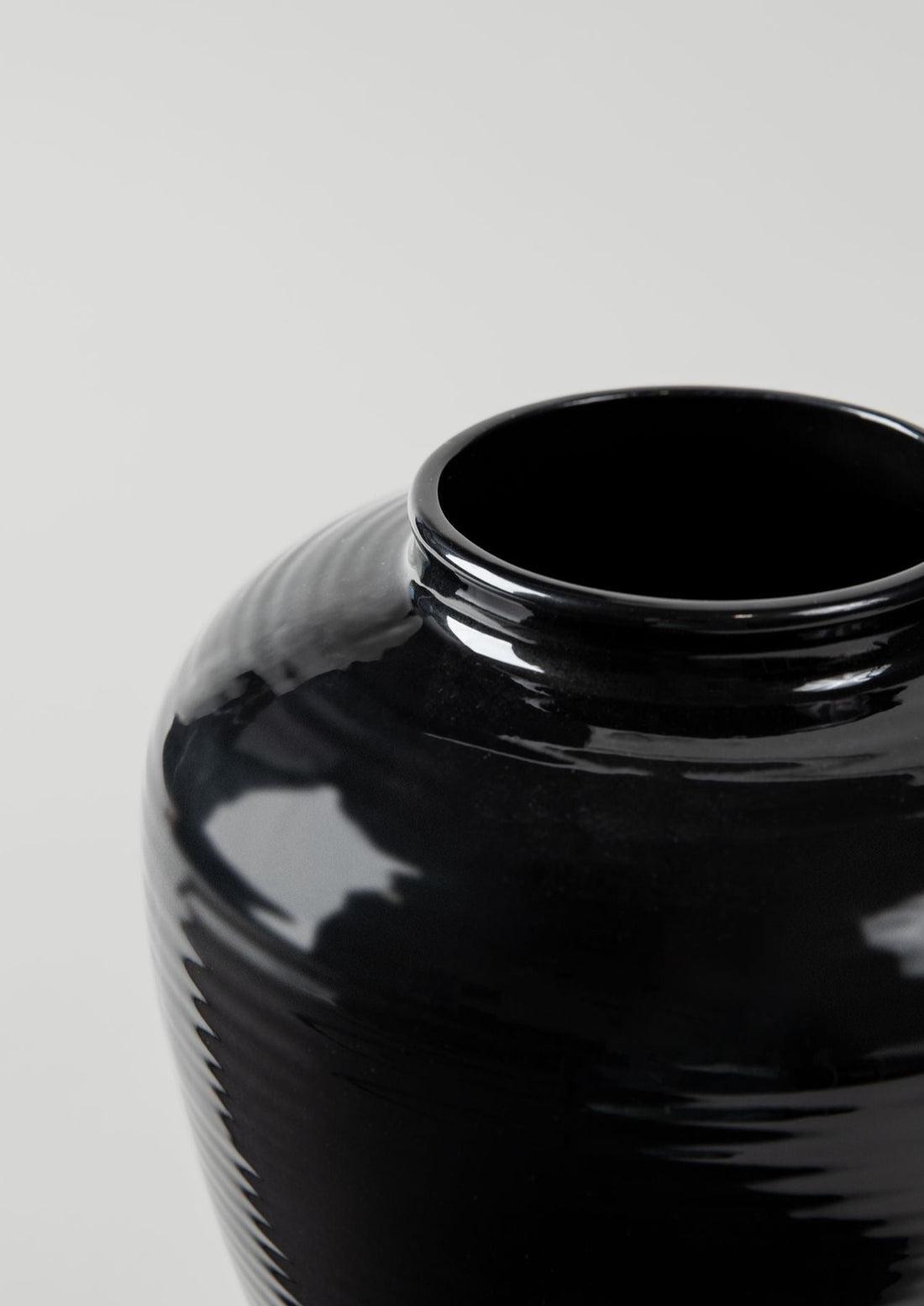 Glazed Afloral Ribbed Stoneware Table Vase in Noir - 8"