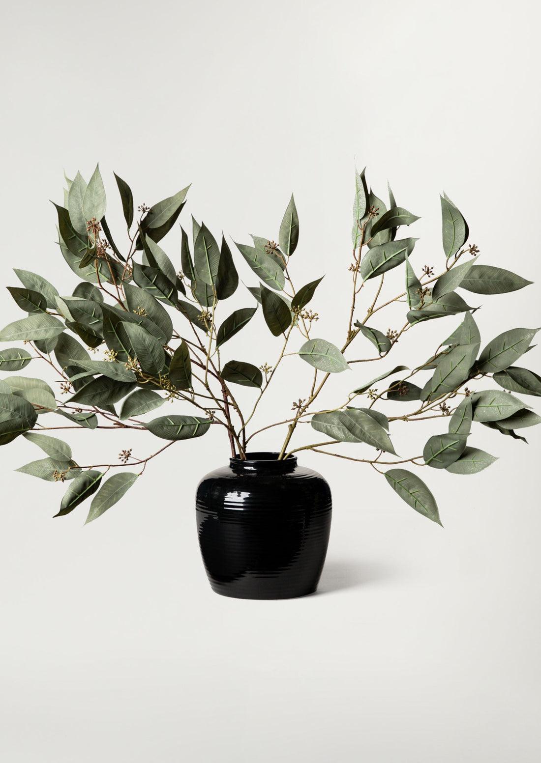 Create an elevated statement with this large textured stoneware tabletop vase that is an ideal ceramic vessel for over-the-top centerpieces. Exclusive to Afloral, this glazed and glossy black ribbed vase has a watertight glazed interior. Style it with artificial branches, dried flowers, or faux florals, and you have an arrangement that takes your interior design to the next level. Then, showcase your floral design on any table for an eye-catching focal point that enhances the beauty of the spaces in your home.