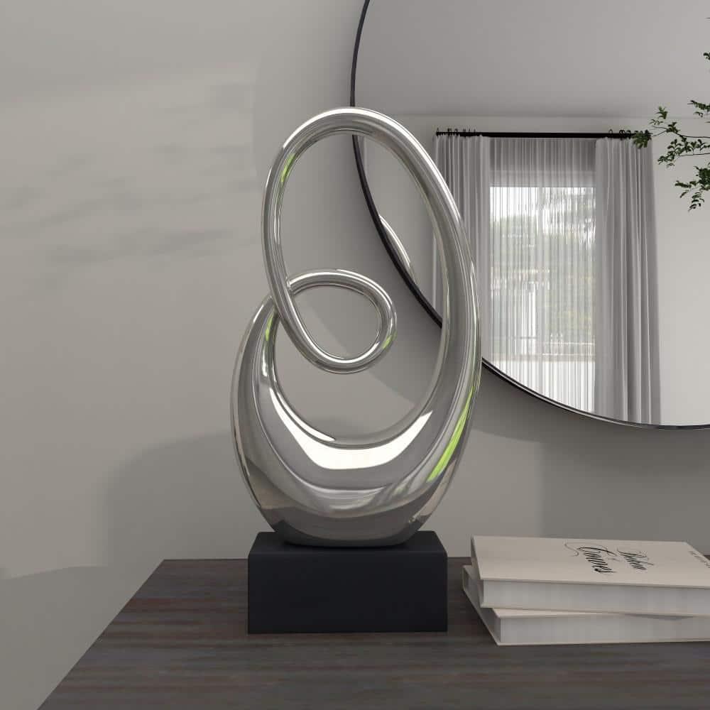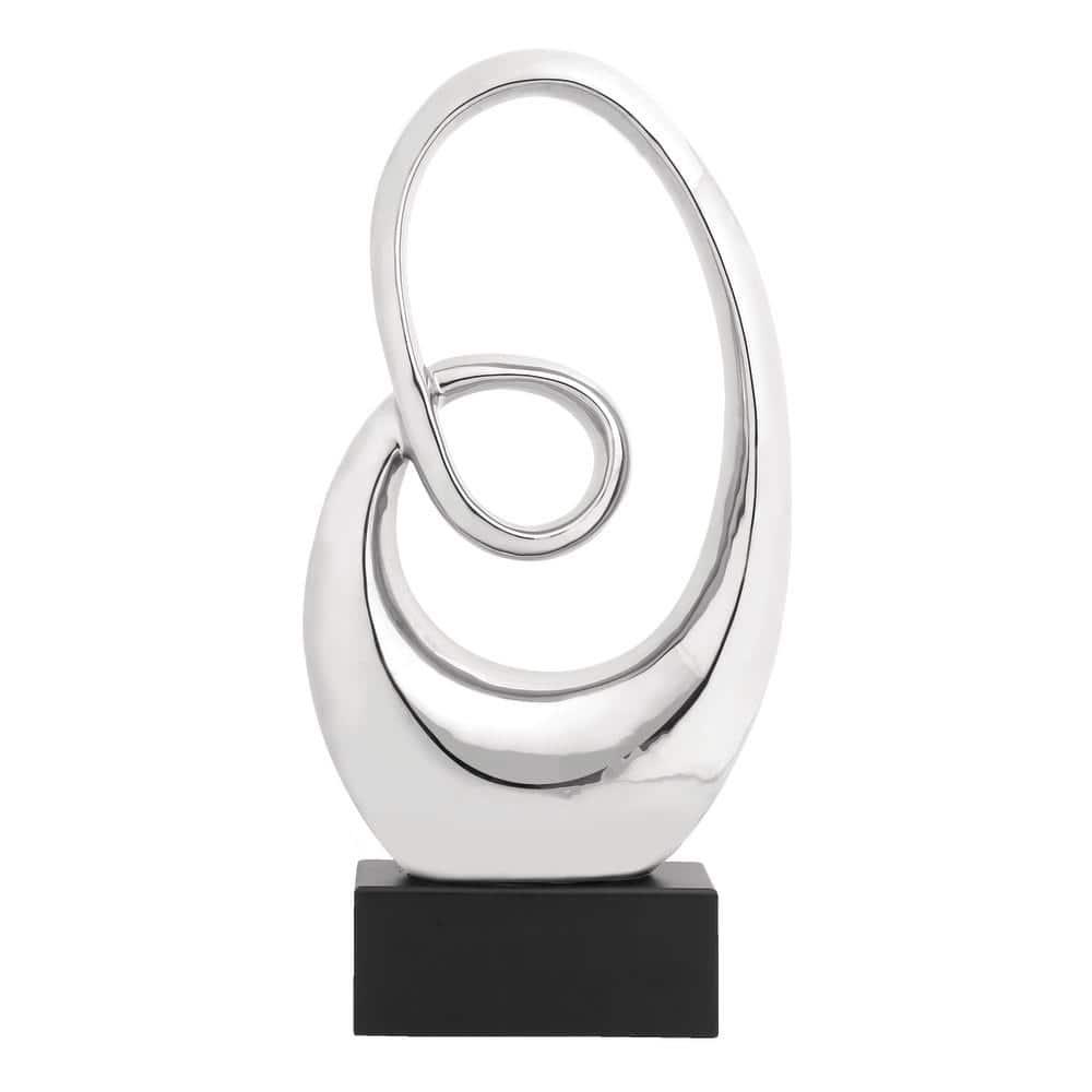 4 in. x 21 in. Silver Ceramic Swirl Abstract Sculpture with Black Base