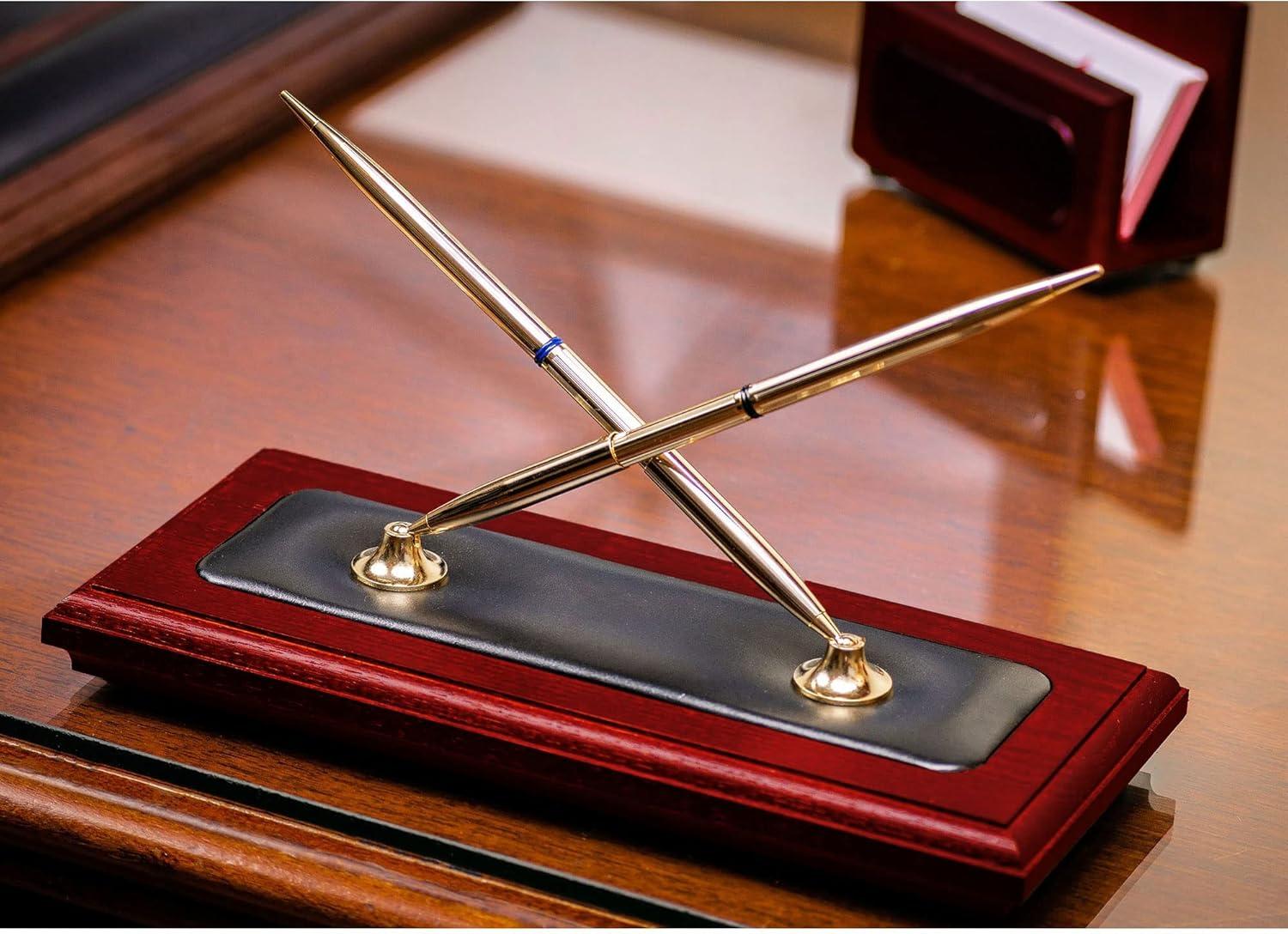 Dacasso A8004 Wood & Leather Double Pen Stand Desk Set