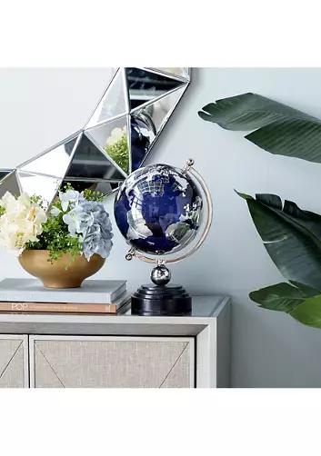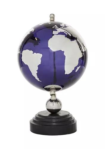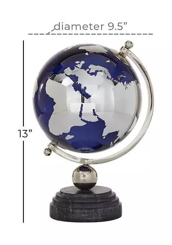 Inspired by blissful serenity and the allure of the sea, where soothing hues and natural textures bring effortless charm to the home. Navy glass globe with aluminum axis stand and marble platform base. Features a glistening navy finish on the globe, its marble platform base has a tracking underneath to prevent scuffing and slipping. This coastal style blue and silver accent piece features a glass globe with aluminum axis stand and marble platform base. The blue marble globe measures 7.80L x 7.80W x 13.05H inches, and weighs 5.46 lbs