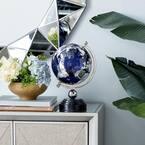 13 in. Blue Ceramic Decorative Globe with Silver Accents