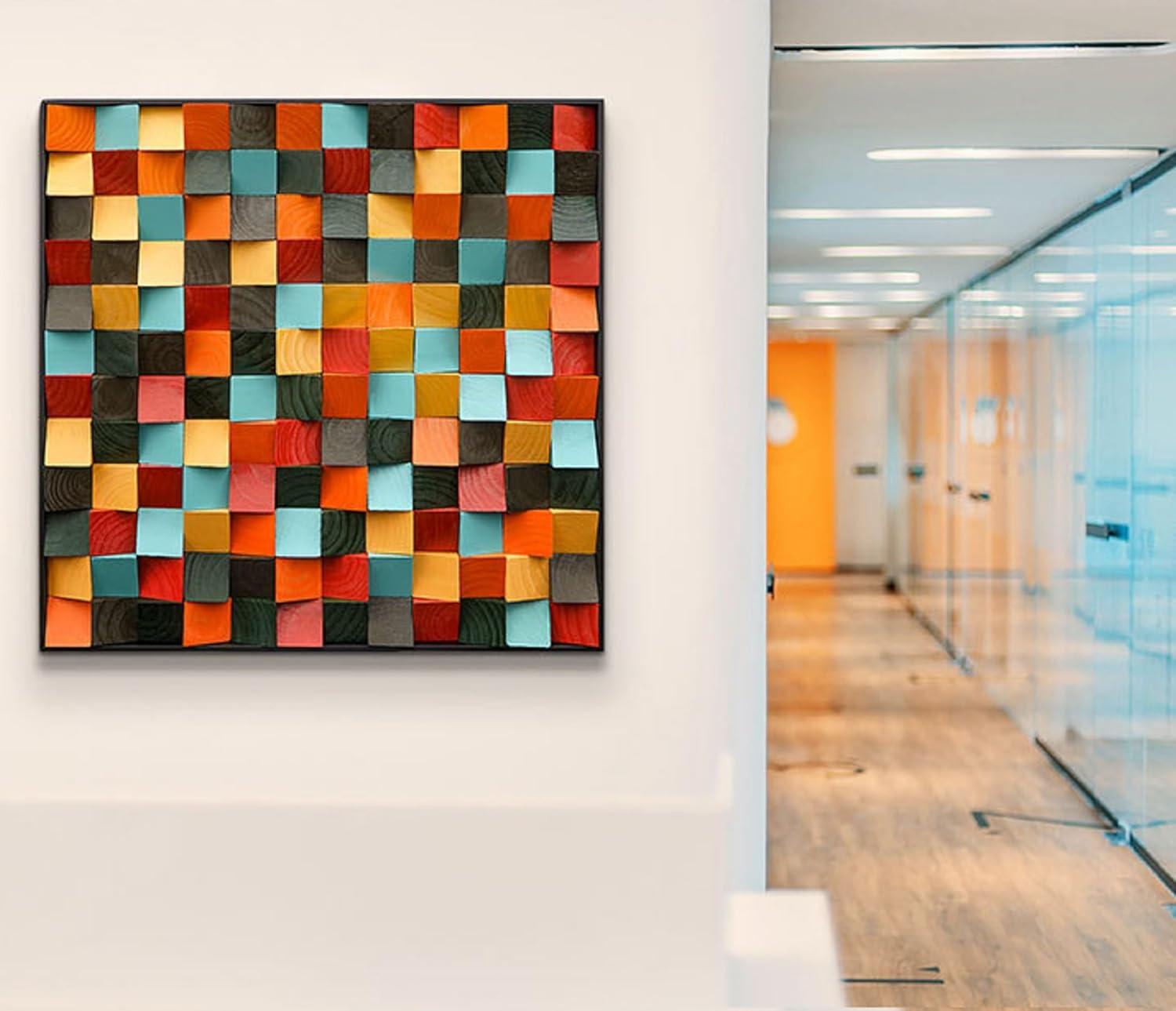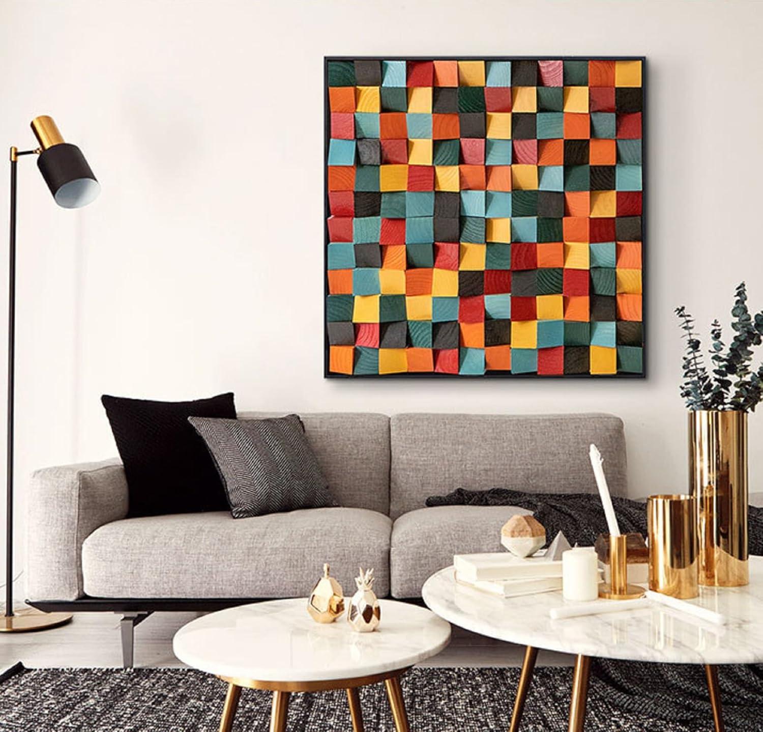 Gzsyyds Wood Mosaic Wall Art is spliced together by wood blocks, designed by nature, every block shares unique wood texture, makes this wood wall art attractive and stunning. 24.5 X 24.5 X 2.2 inches, 14 pounds. Disclosure: We are a participant in the Amazon Services LLC Associates Program, an affiliate advertising program designed to provide a means for us to earn fees by linking to Amazon.com and Affiliate sites.