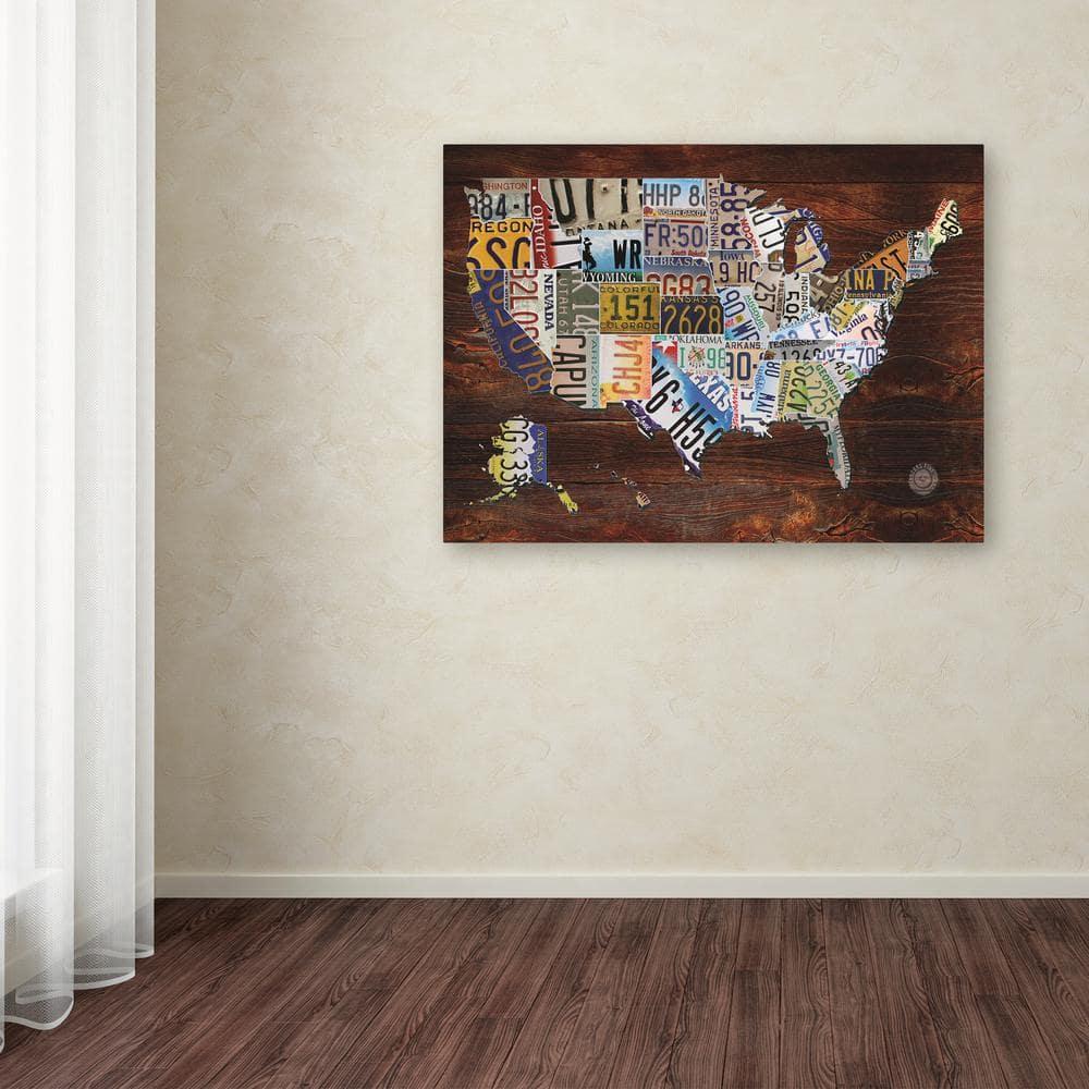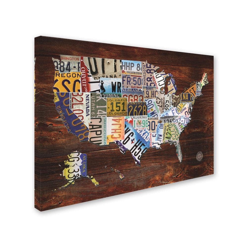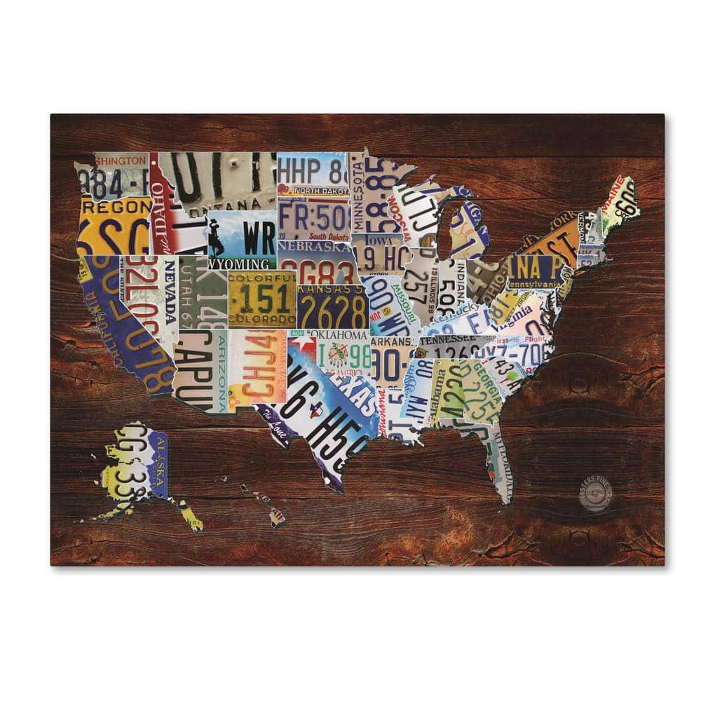 24 in. x 32 in. "USA License Plate Map on Wood" by Masters Fine Art Printed Canvas Wall Art