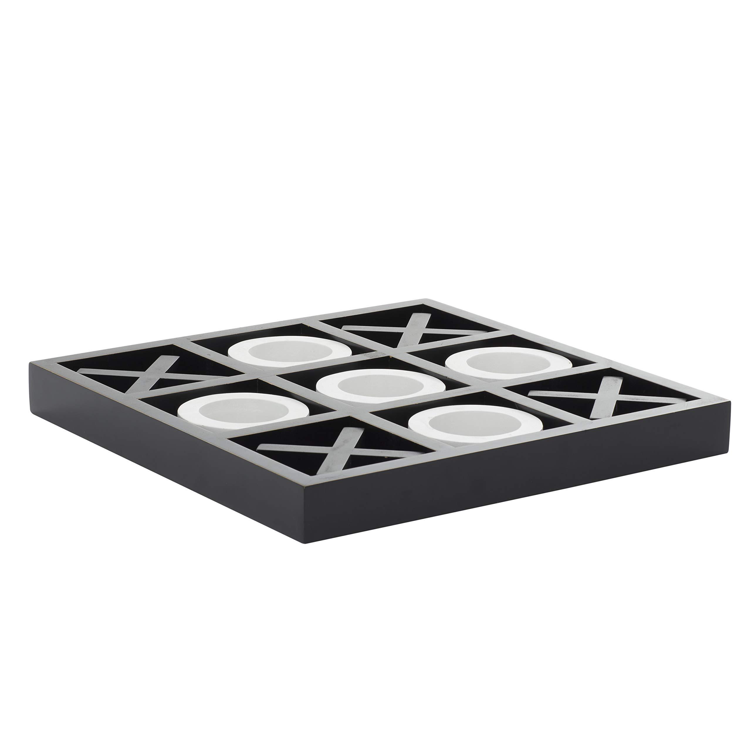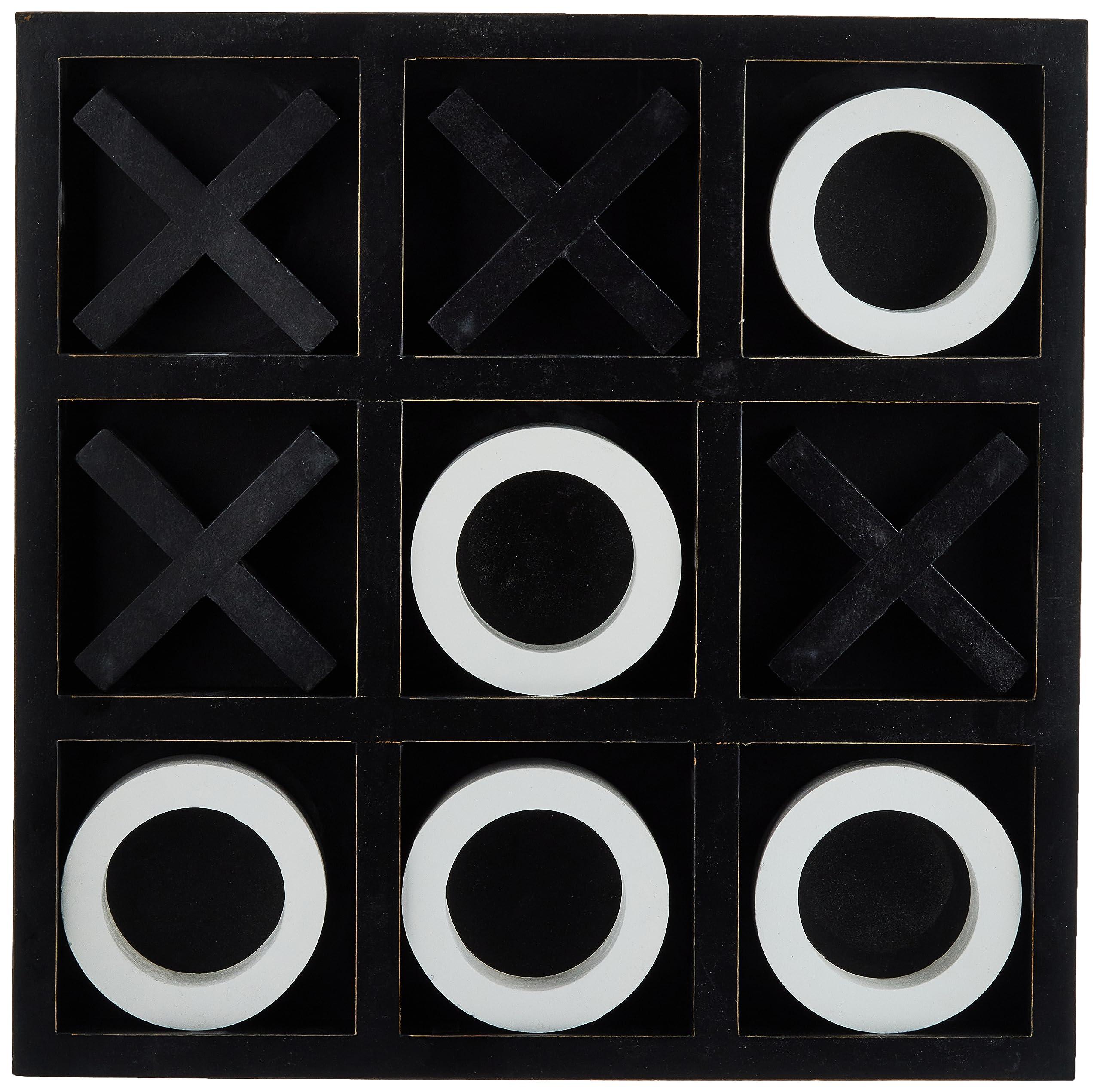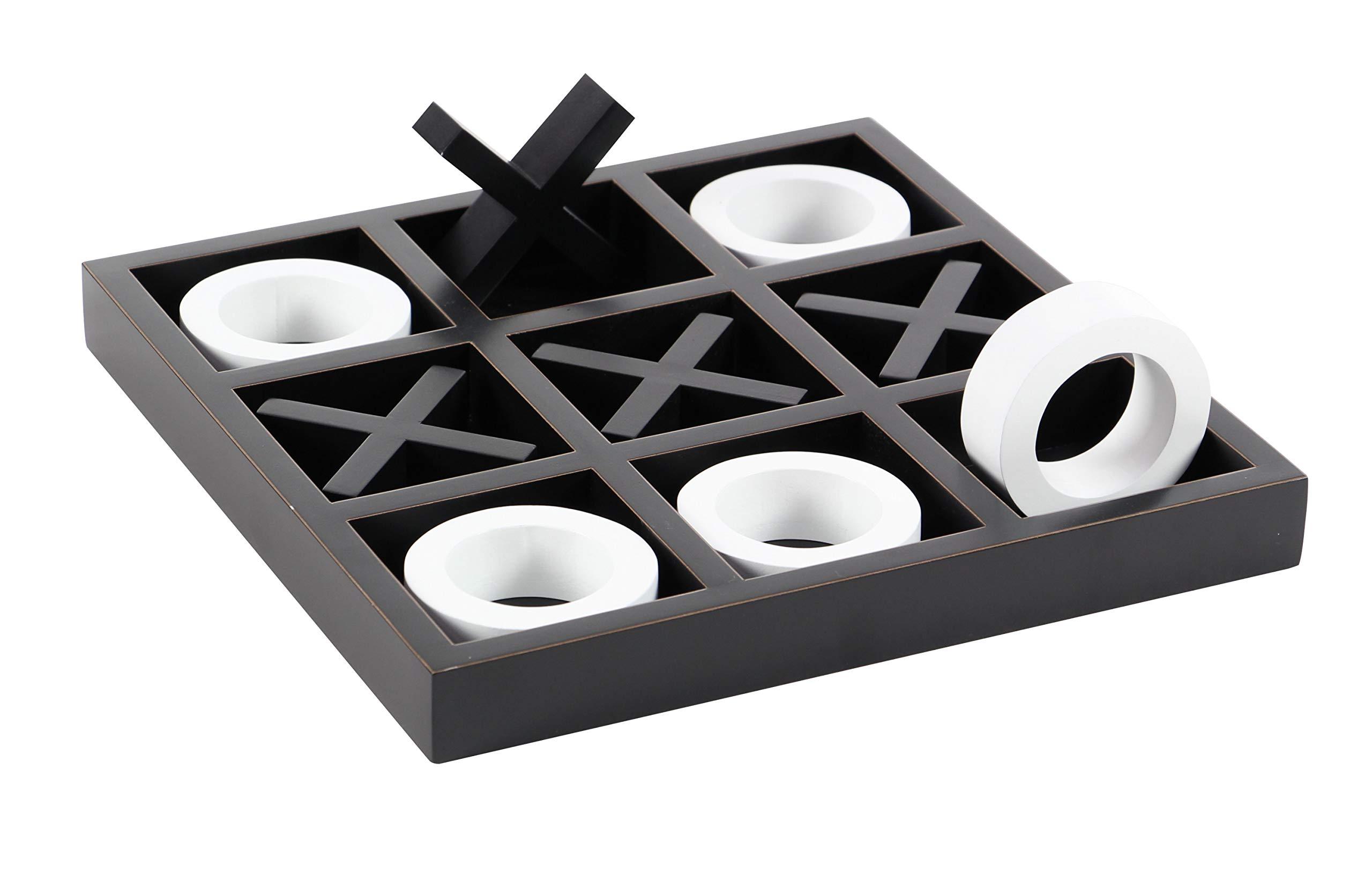 Deco 79 Wood Tic Tac Toe Game Set with White Os, 14" x 14" x 2", Black