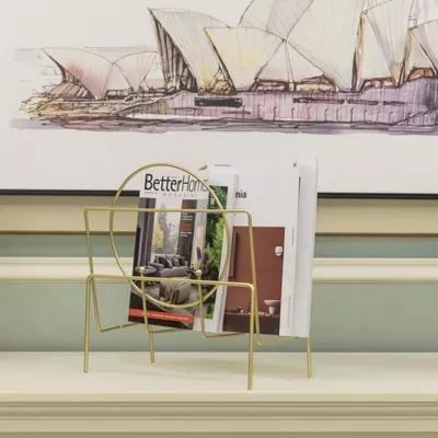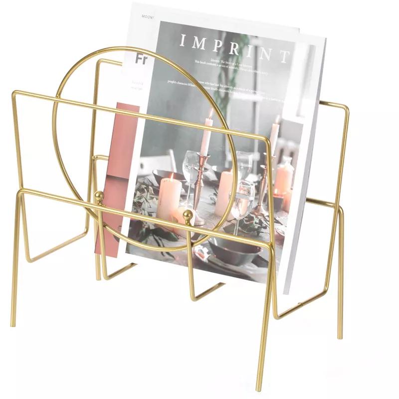 Fabulaxe Gold Metal Modern Decorative Freestanding Floor Magazine Book Rack Storage Holder