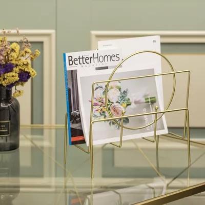 Storage and organize your newspaper with this magazine storage rack. This stand will keep your files, documents, folders, books, newspapers, or mail in a neat and decorative way. It is made of faux leather pocket with a gold metal frame that makes a stylish and useful addition to any workspace. Suitable for organizing your desk, table, or counter in an office or kitchen. Featuring a handle that allows convenient carrying. Decorate your home and office while adding a modern and contemporary charm!