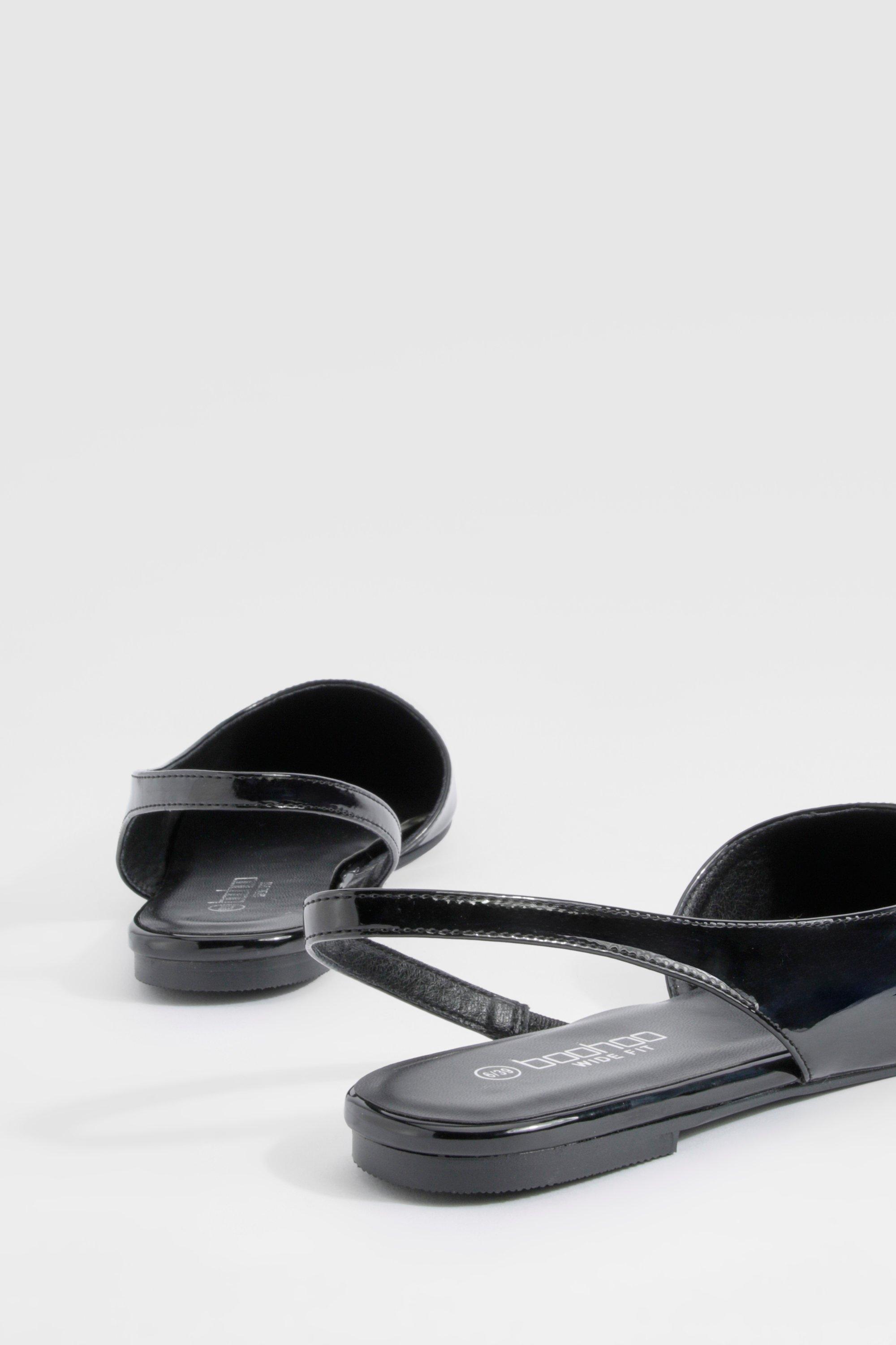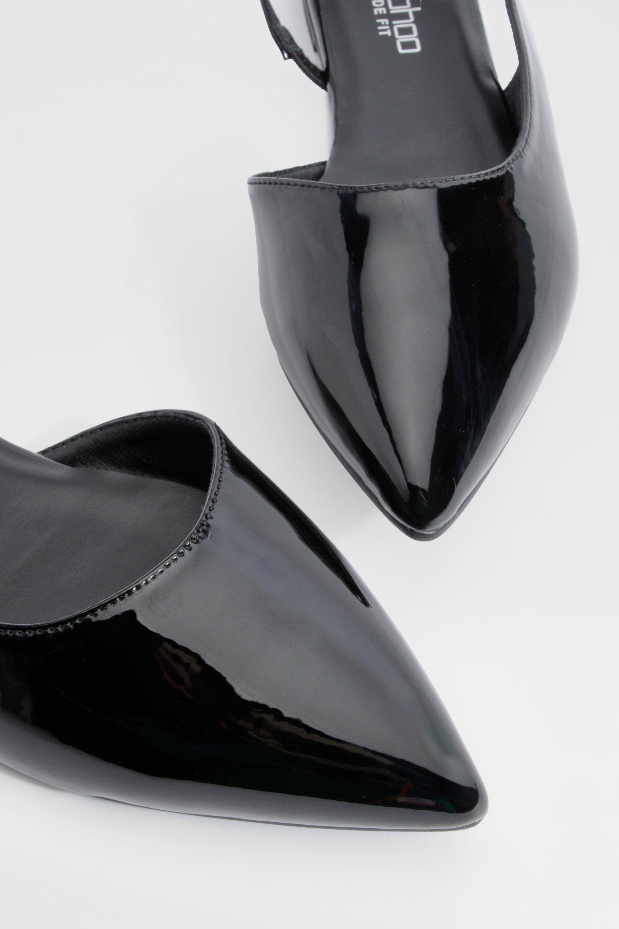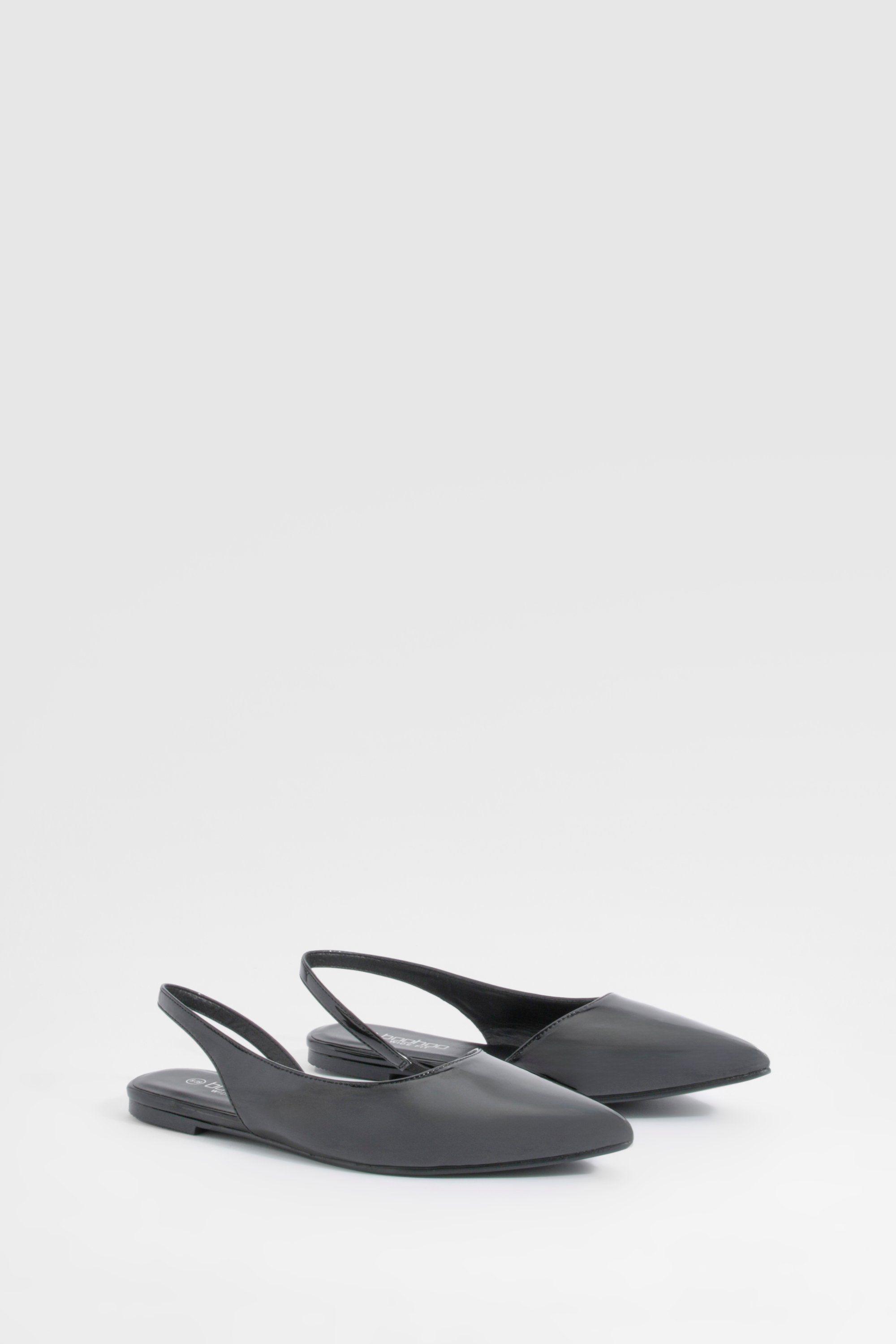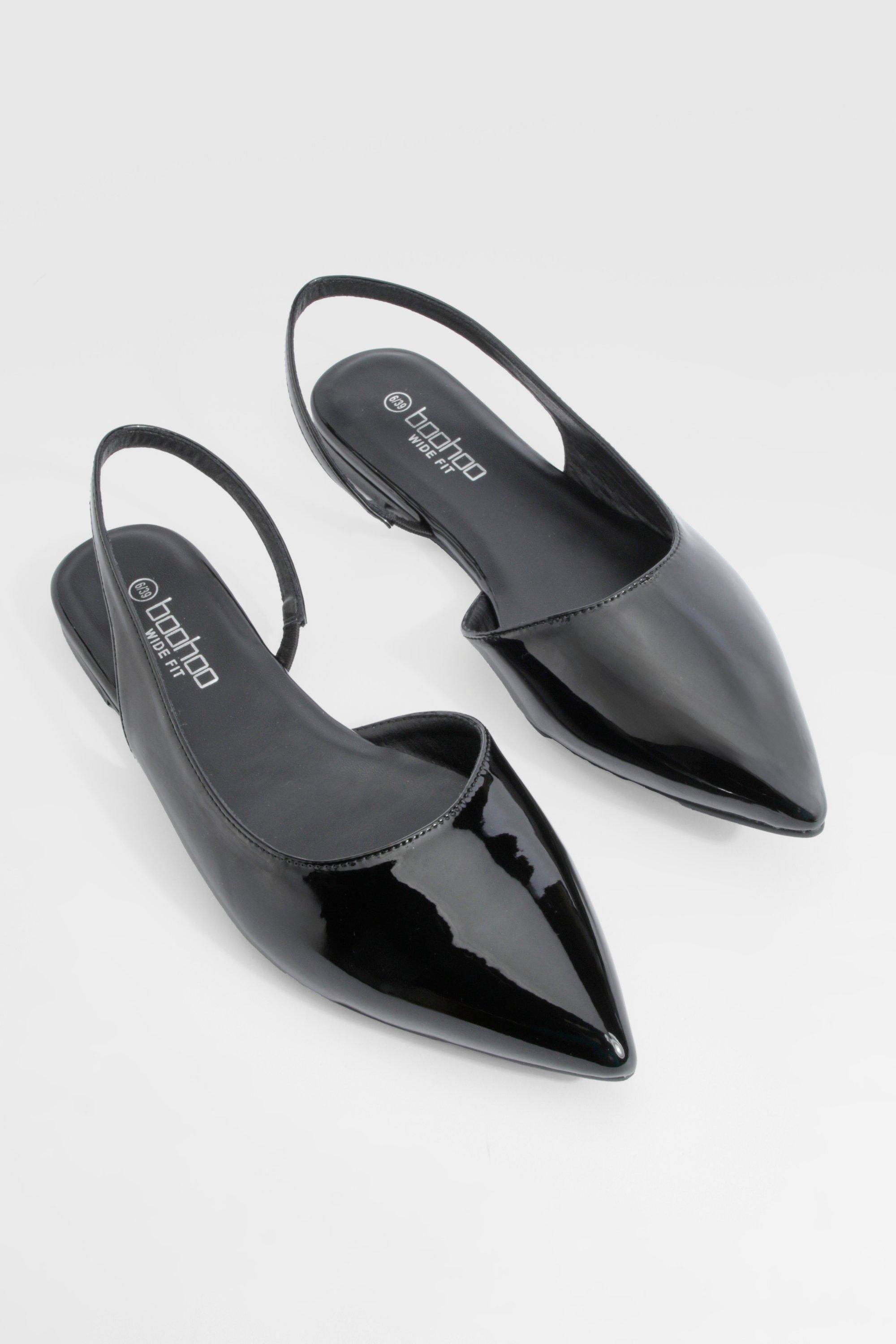 Womens Slingback Patent Pointed Flats - Black - 10 - Serve up sassy and sexy looks with these sizzling slingbacks. With a pointed toe and low cut front, these slingback pumps are great for lunches, after-work drinks and clubbing - you can even add them to your 9 to 5 capsule. There are many ways to style these, like teaming them with cropped jeans and a strappy tank top or a skirt and longline coat. Here's a fresh work look: slingback shoes with wide-cut jeans, and a blazer. Just add your favorite bag and you're ready to slay.Style: Pointed FlatsFabric: Patent