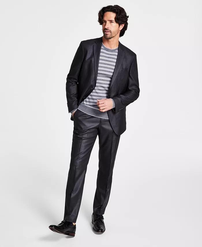 A Ready Flex Suit with Kenneth Cole Reaction's signature Techni-Cole features, this Basketweave suit is designed for the fashion-forward, the travel-smart and the tech-savvy. Performance stretch fabric provides optimum mobility, superior comfort and maximum range of motion and a hemmed 32" pant means it is ready to wear.
