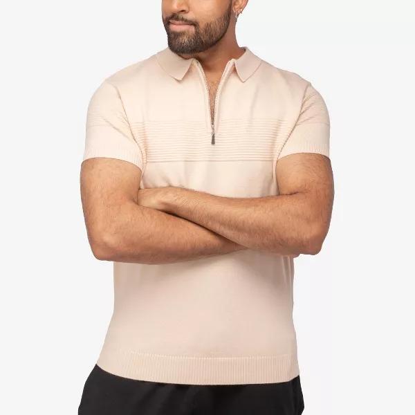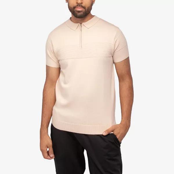 X RAY Men's Ottoman Texture Short Sleeves Slim Fit Polo Sweater.The Texture Knit Fabric Creates A Distinctive And Refined Aesthetic, Complemented By Ribbed Cuffs And Hem For A Slim Fit.Featuring A Classic Lapel Collar,Texture Knit Fabric, Quarter Zip Closure And Ribbed Cuff And Hem . For Easy Care, Simply Turn The Garment Inside Out And Machine Wash Cold.