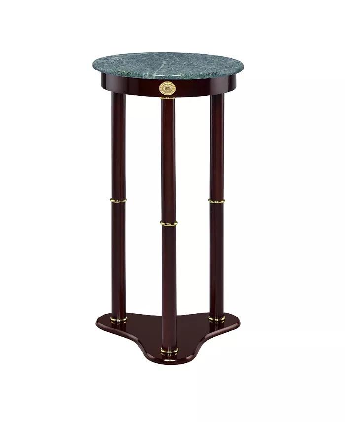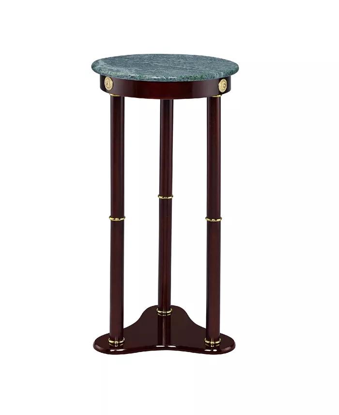 This round plant stand is exactly what you need to hold an accent plant. The top features green marble while the base is finished in merlot. An ornate medallion on the table's front edge adds a classic touch to complete the design.