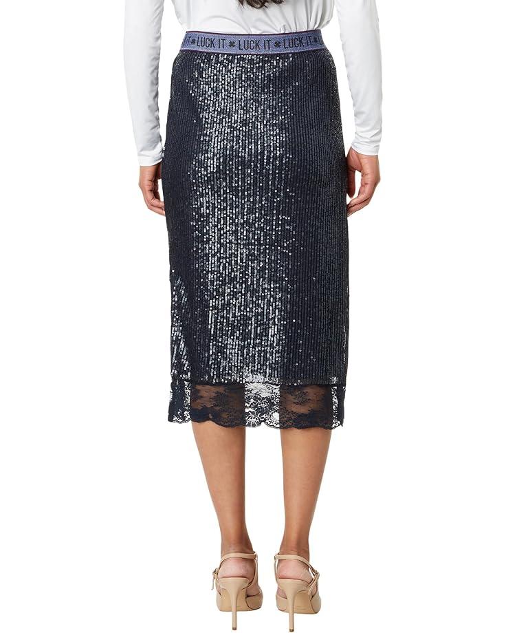 Shine like the star you are by wearing Lucky Brand® Sequin Lace Midi Skirt. The skirt features a pretty lace detail and all-over shimmery sequins, this midi skirt is essential for making a major style statement at your next date night, day out or special event It has elastic waist, midi length with mid-rise, and pull-on style.