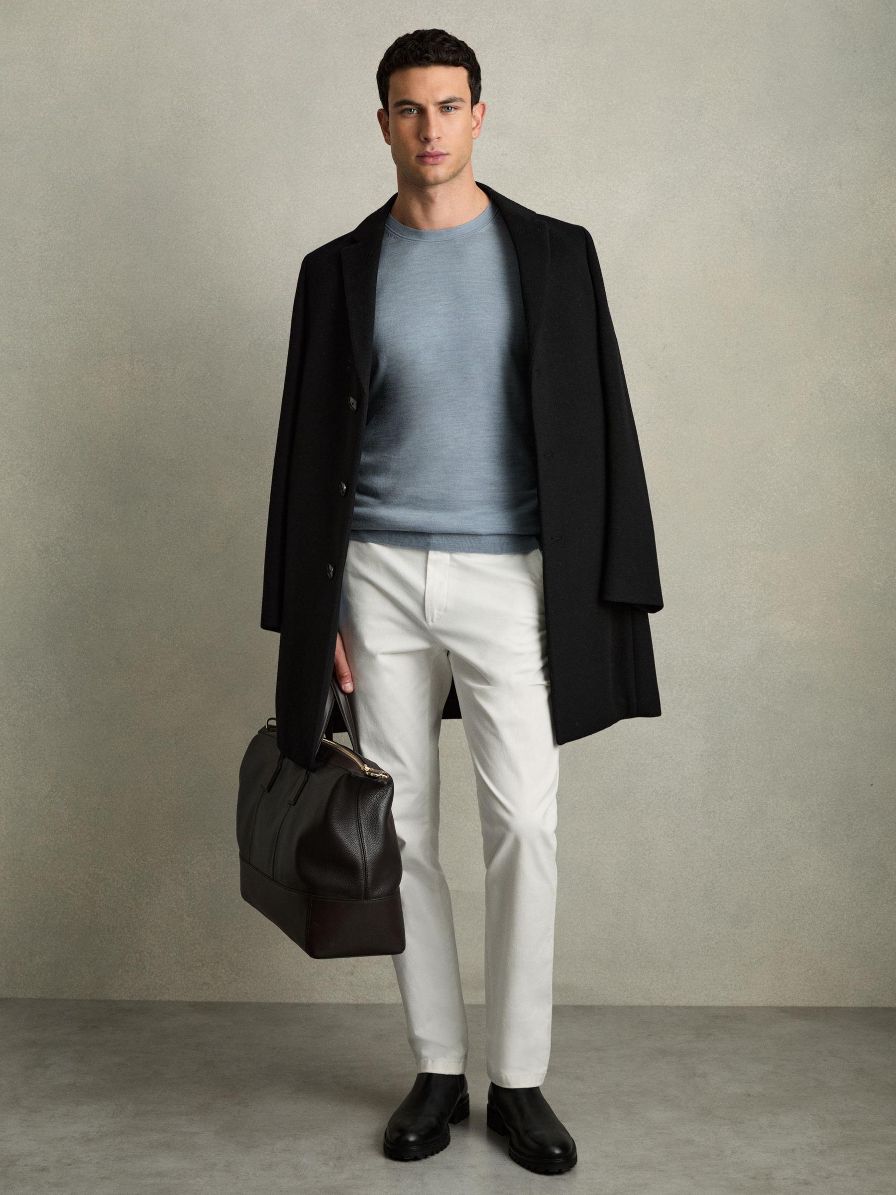 Knitted from soft merino wool, the Wessex crew neck jumper in deep teal is an ultra-soft, warming and versatile wardrobe essential. 100% merino wool. Crew neckline. Long sleeves. Ribbed hem and cuffs.